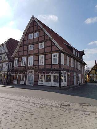 Die Wohnung befindet sich in einem denkmalgeschützten Wohn- und Geschäftshaus in Fachwerkbauweise.